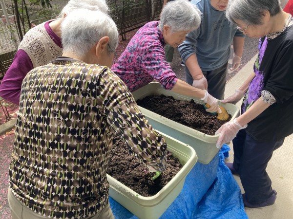 カメラを一切気にすることなく真剣に土を耕し苗を植えている皆様。
