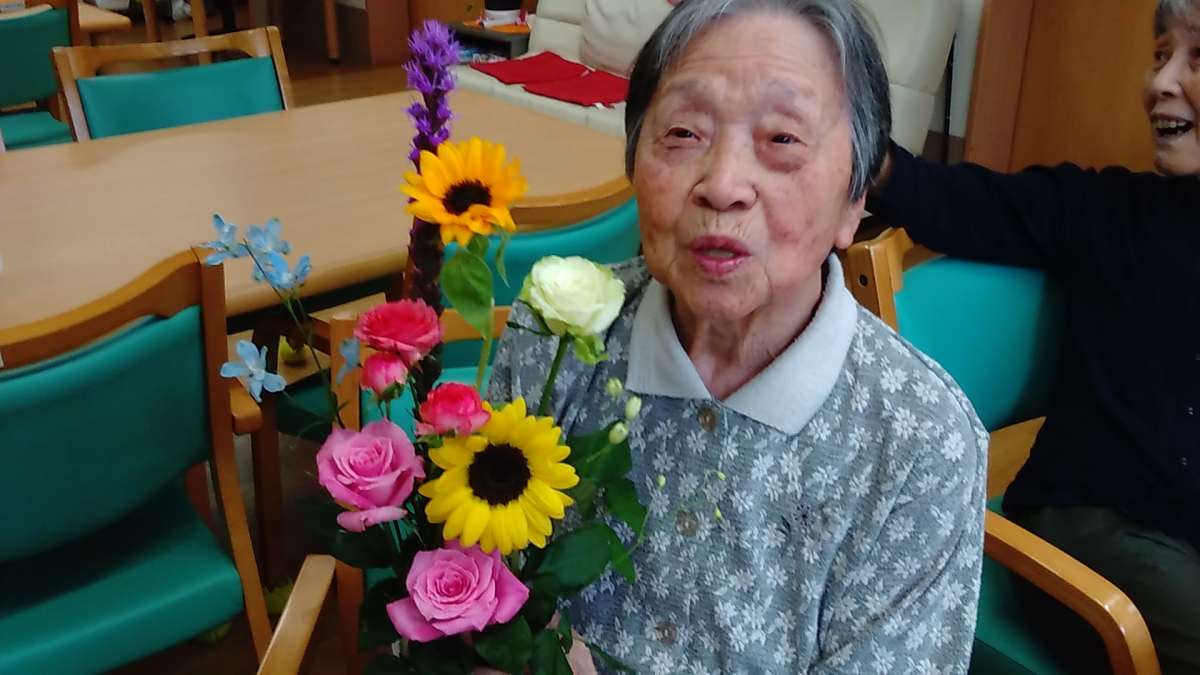 ご利用者様同士で、和気あいあいとお花をいけて、御自宅に持って帰って飾ったり、施設の御自分の部屋に飾ったり♪♪