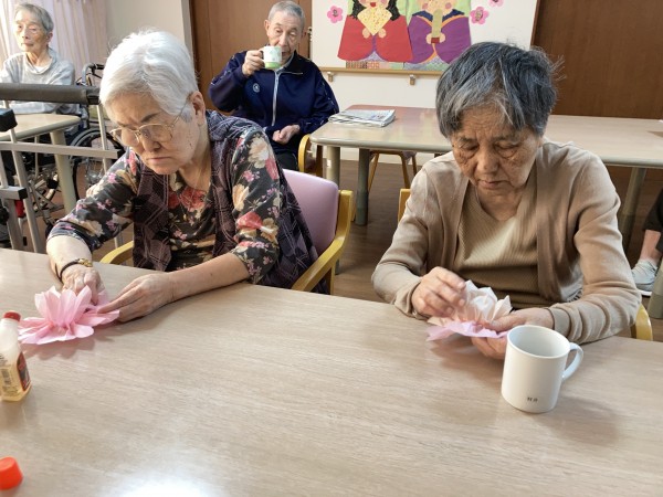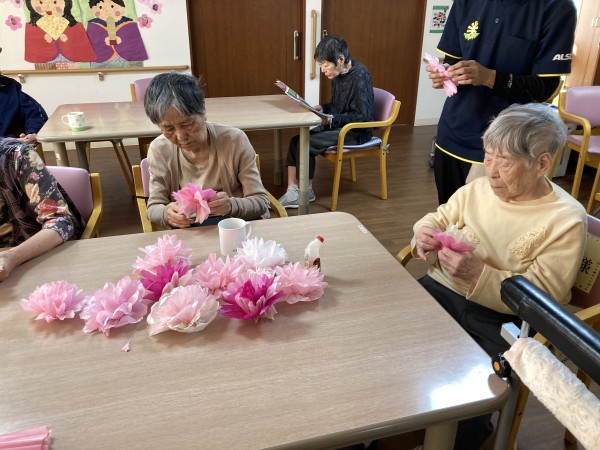 お花紙をじゃばらに折る作業は、指先を使うので“脳のトレーニング”にとてもよいです!!!