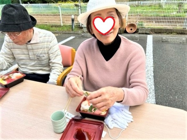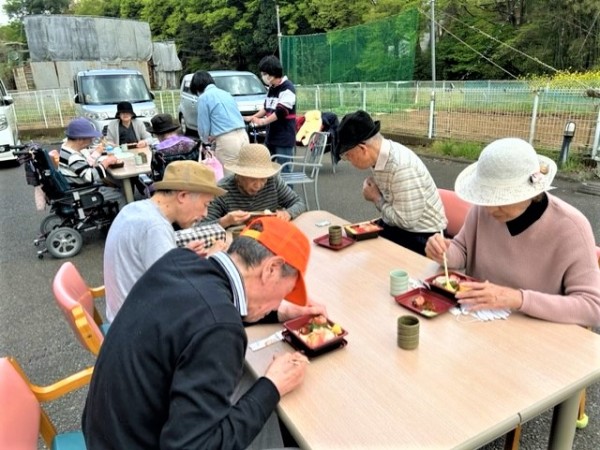 今年も『お花見弁当出前』を企画しましたが、日程が遅れ遅れになってしまい、ホームから見える唯一の桜の花も散ってしまいました。