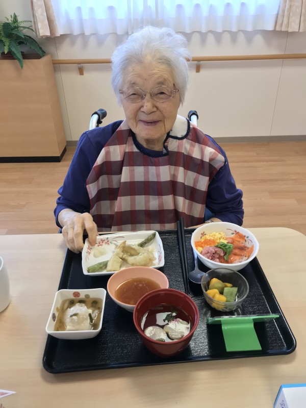 〜桜ちらし・すまし汁・春の天ぷら・とろろ蒸し・フルーツ〜