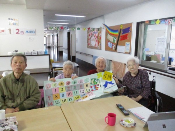 今日は皆さんにお手伝いしてもらって、5月のカレンダーを作りました。