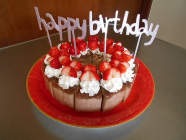 スタッフからの色紙とケーキ、皆様からのバースディソングの