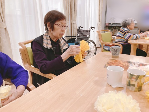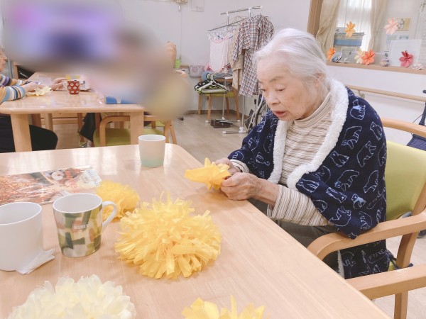 春のお花といえばタンポポということで、今回はご利用者様に黄色いお花紙を使ってタンポポを作って頂きました(*^-^*)