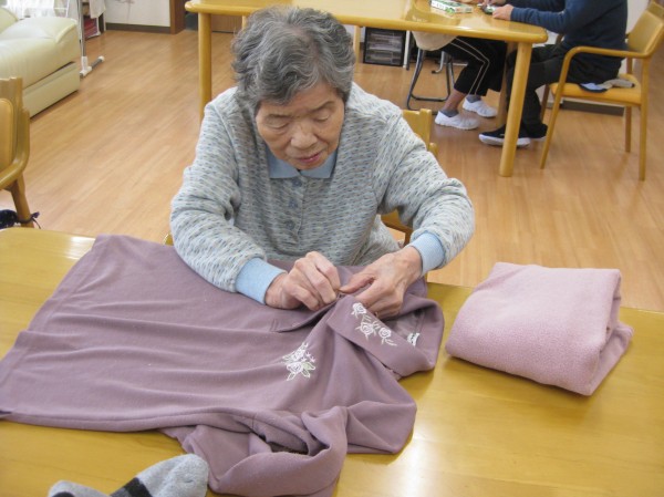 お手伝いのご様子です!(^^)! 何でもやりますのでとお洗濯物畳みをして下さっています( ^ω^)・・・ 嬉しそうに楽しまれてお喋りしながら畳まれています(^^♪ もう終わりですか? まだありますか?と手持ち無沙汰のようでした。また、ためておきますのでよろしくお願いいたしますとお伝えしました。頼みますよ?と仰り頼もしい限りです????