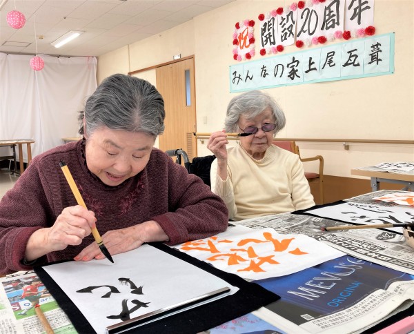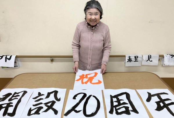 記憶に新しい20周年式典で、壁一面に飾っていた、「祝開設20周年」「みんなの家上尾瓦葺」ですが