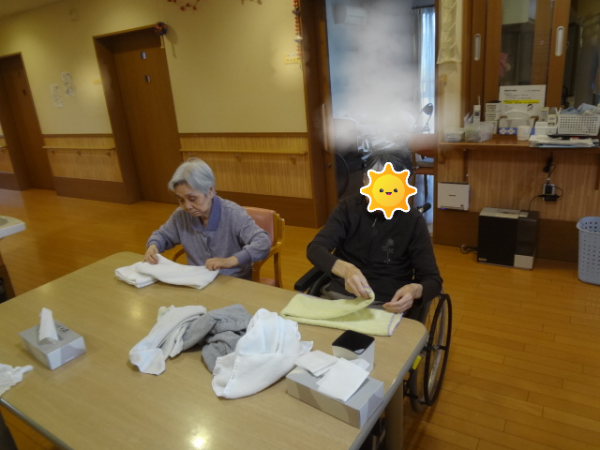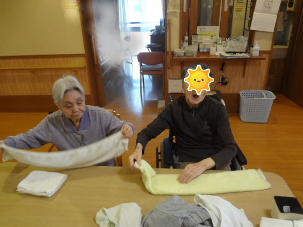 普段から仲の良いお二人です(/・ω・)/今日も一緒に洗濯物をたたんでくれています(^o^)丿