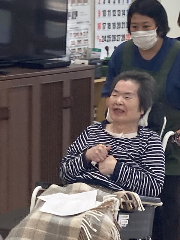 いつもはフロアに来ても早く横になりたい…なんて弱気な事を話されておりましたが歌を歌っているこの日は1時間ずっとフロアで歌を歌っていました(*´▽`*)