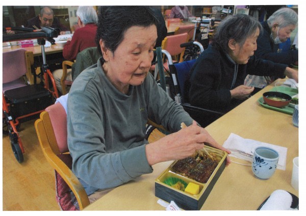 本日はお弁当の日、和食『さと』さんのお弁当です。鰻、てんぷら、ステーキなどお好きなメニューを事前にご注文していただきます。今回の一番人気はうな重でした。皆様とてもおいしそうに頂いていらっしゃいました。