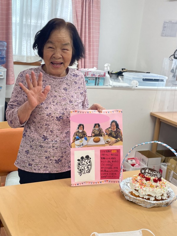 今月はお誕生日の方がいらっしゃり、手作りケーキでお祝いをしました!