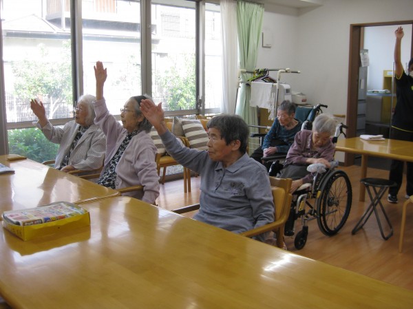 みなさま、ビデオを見ながら元気にALSOK体操に参加されています( ^ω^)・・・ 手を高く上げられたり足を動かしたりと脳が活性されたようですね(^^♪ 職員さんも頑張っていますね!(^^)!