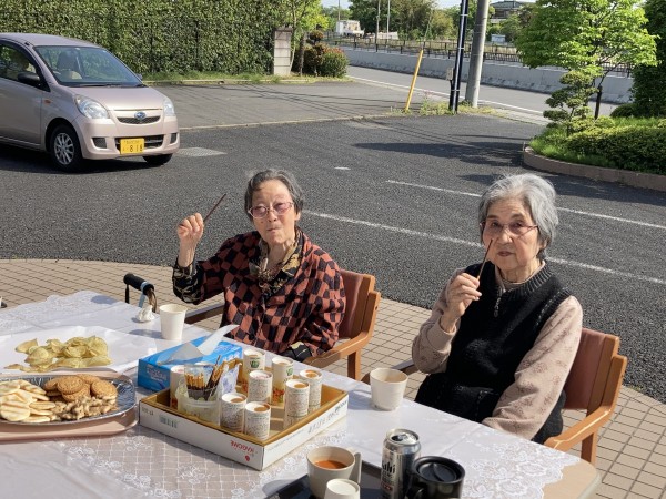 暖かい陽気とお菓子と飲み物に、皆様ご満足して頂けたようです。
