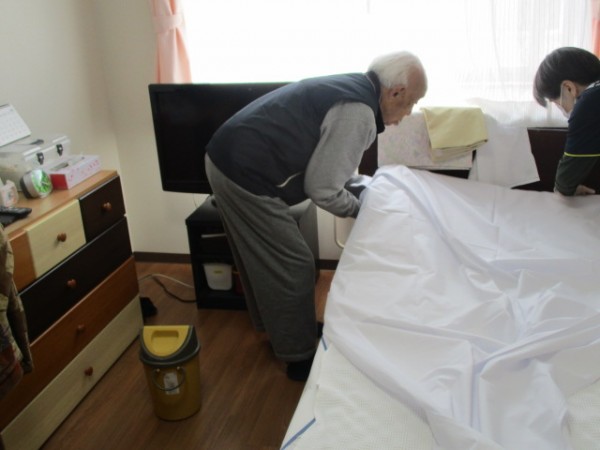 3. お手伝い(シーツ交換)のご様子☆