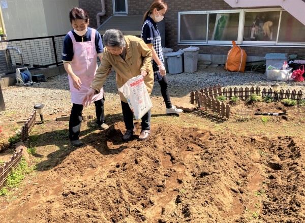 空いている畑さんもそろそろ夏野菜を植えていきますので、こちらにも肥料を撒いていきます♪