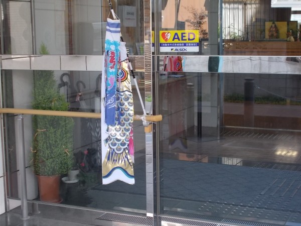 みんなの家・新都心でも玄関前にこいのぼりを泳がせてみました。