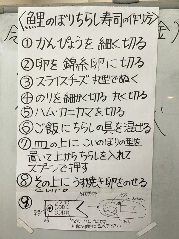 見た目だけではなく、味もとっても美味しくて皆様、ご自身で作った【鯉のぼりちらし寿司】は完食して下さいました(*^^)v