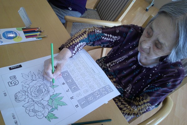 今日は午後からみんなで塗り絵をして頂きました。