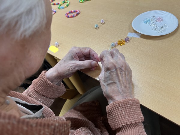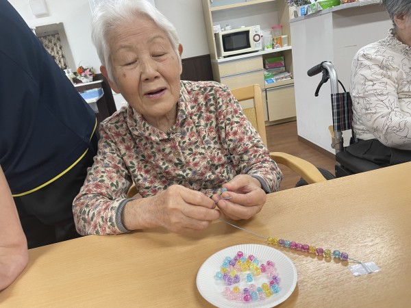 ビーズを使ったレクは手先のトレーニング