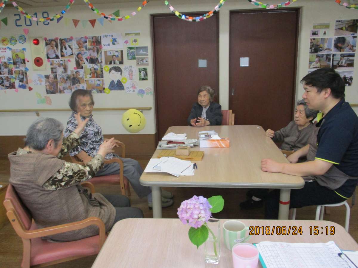 普段はフロアごとに生活されておりますが、時々館内散歩などで他階のご利用者様同士の