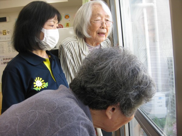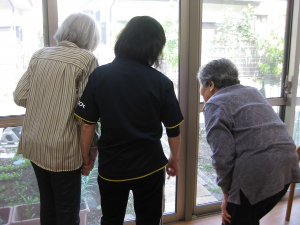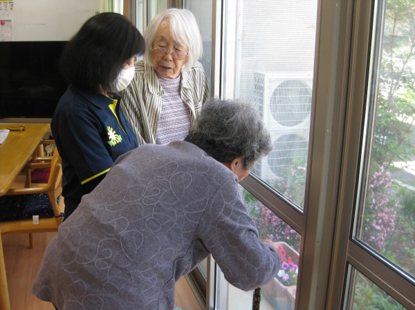 こんにちは! グループホームみんなの家・あきがせの介護ブログです! よろしくお願いいたします。 今日はホールから外を眺められお喋りをされています。その時のご様子をお知らせいたします!