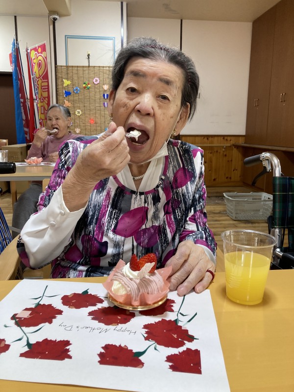 『母の日』ということで、美味しいケーキをお出しし、召し上がっていただきました。