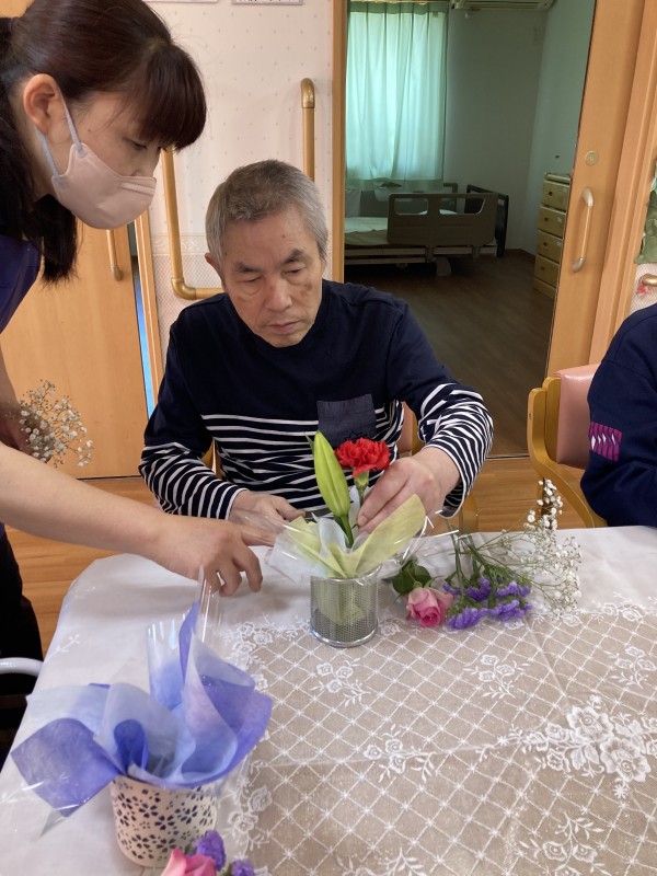 今年も母の日イベントを行い生け花を行いました!