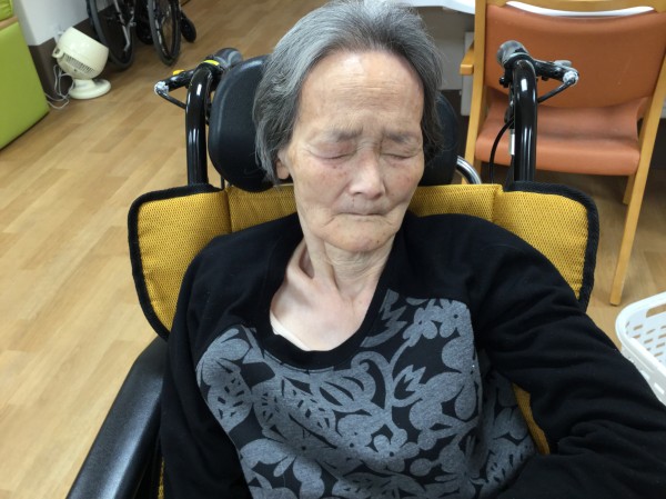 丁度、目が覚められたので鏡のところへお連れし「髪の毛サッパリされたの分かりますか」と声をかけると「うん…わかるよ♡」と鏡で確認されていたI様なのでした。