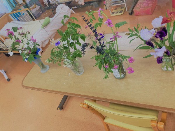 毎週火曜日恒例、ご利用者様のフラワー畑をご覧になりつつ始まり始まり~