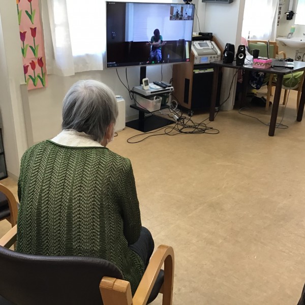 食後のトランプで皆様が真剣におこなっているなか、スタッフがリモートの準備をしていると・・・