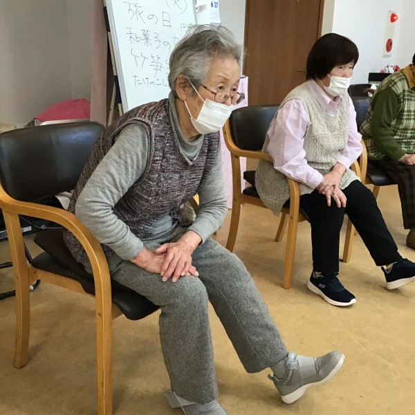 先生の動きに合わせて肩甲骨を開いたり、閉じたり、