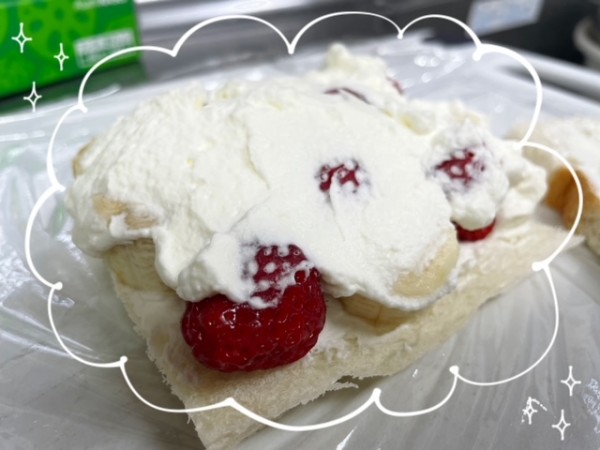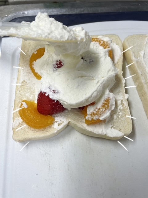スタッフが試行錯誤して( ´∀` )フルーツサンドを作りました。