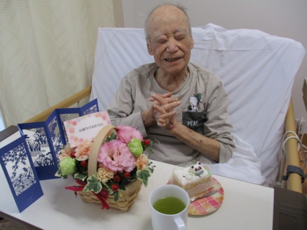 5月生まれのM様はご家族様から届いたお花とケーキを喜ばれていました♬