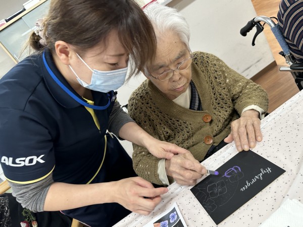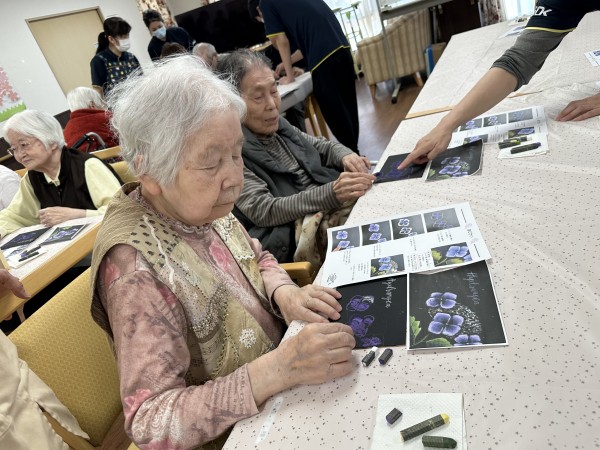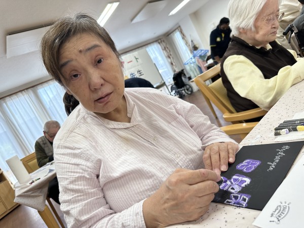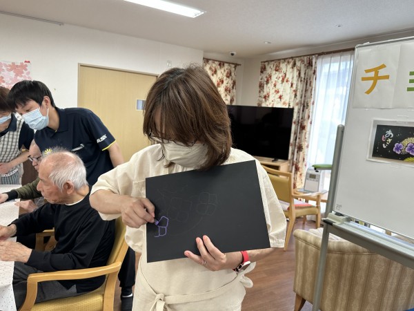 ご家族様が後日面会に来られた時に、あまり話をされない方が、チョークアートに参加したお話を簡単ですが、