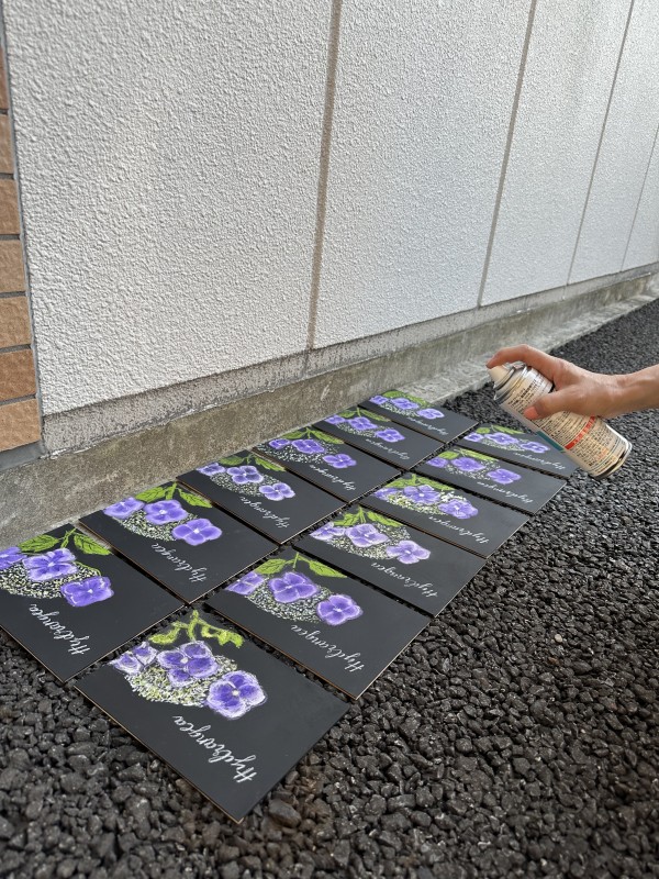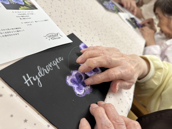 自由に描くのはかなり高度な技が必要なので、先生が季節に合わせて「あじさい」の下描きを描いてきて下さいました☆☆