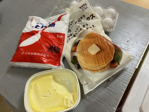ホットケーキミックス、たまご、マーガリン、砂糖、チョコレート