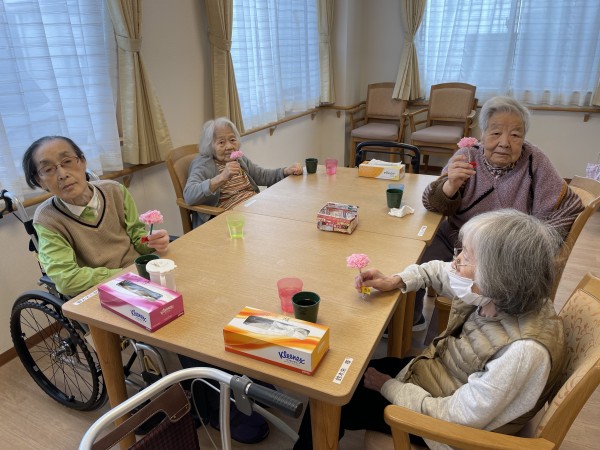 アミカの郷松戸でも、女性のお客様に心ばかりではありますが「手作りカーネーション」をプレゼントいたしました。