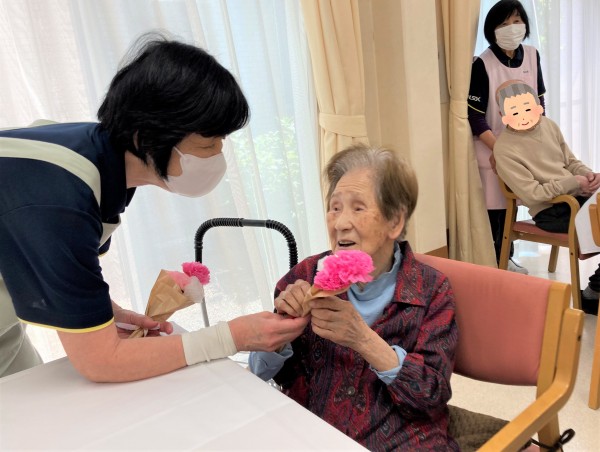 まずは、スタッフからカーネーションのプレゼント♪