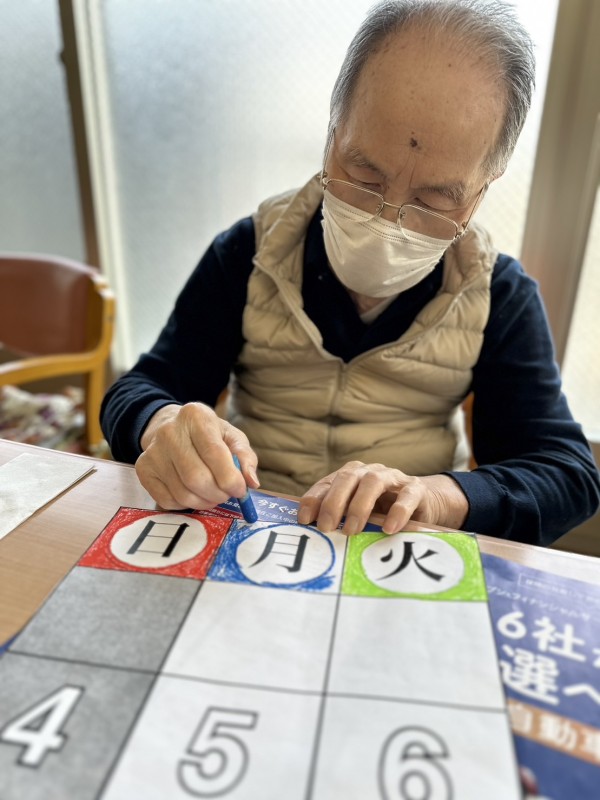 ◉カレンダーの曜日・日付部分をクレヨンで塗って頂く。