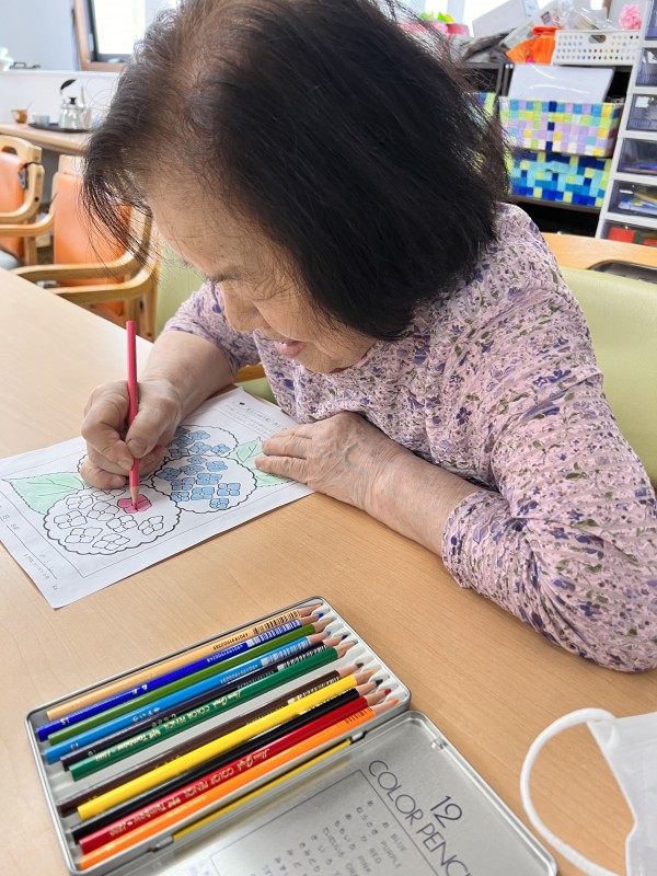 とある雨の多い時期に『今週は雨が多いね〜、もう梅雨かしら?』なんてお話ししながら塗り絵を嗜んで居た時でした、、、
