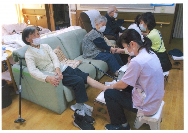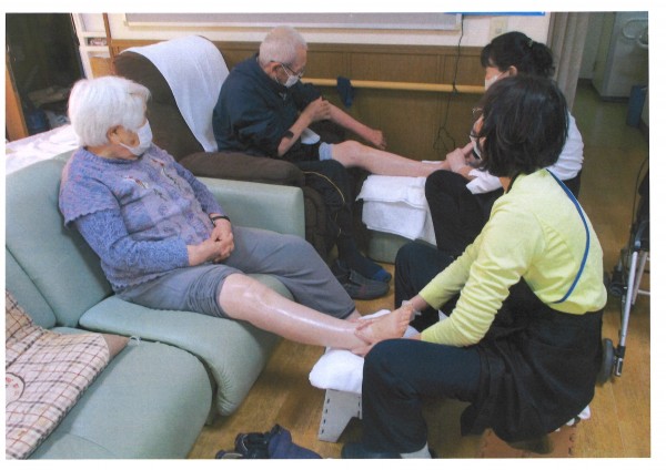 本日は【シニアセラピー】足のリンパドレナージュの日です。優しいタッチの施術でリンパ液を流し血流を良くします。色々とゆっくりお話ししながらの癒しの時間ですね。終わった後は足も軽くなりむくみが取れると好評です。フルーツティーを飲んでバイタルチェックで終了となります。気持ちの良い【シニアセラピー】是非体験してみてはいかがでしょうか?ご利用お待ちしております♪