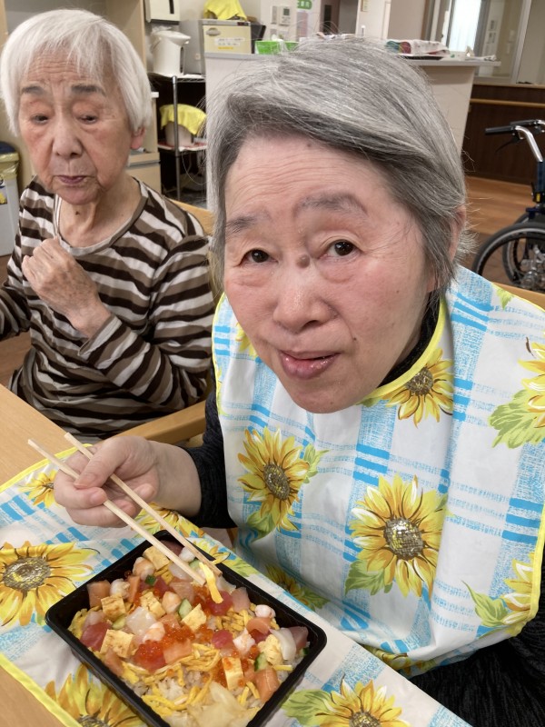 お寿司は食形態を気にしながら、看護師と話し合い、皆さんが食べたいものに出来るだけ沿って注文しています。