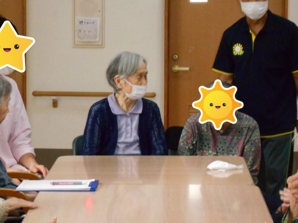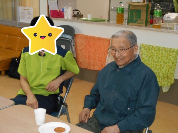菖蒲市役所の職員の方や外部から参加してくださった方たちと入居者様方でお話をしながら、おやつを一緒に召し上がられました。