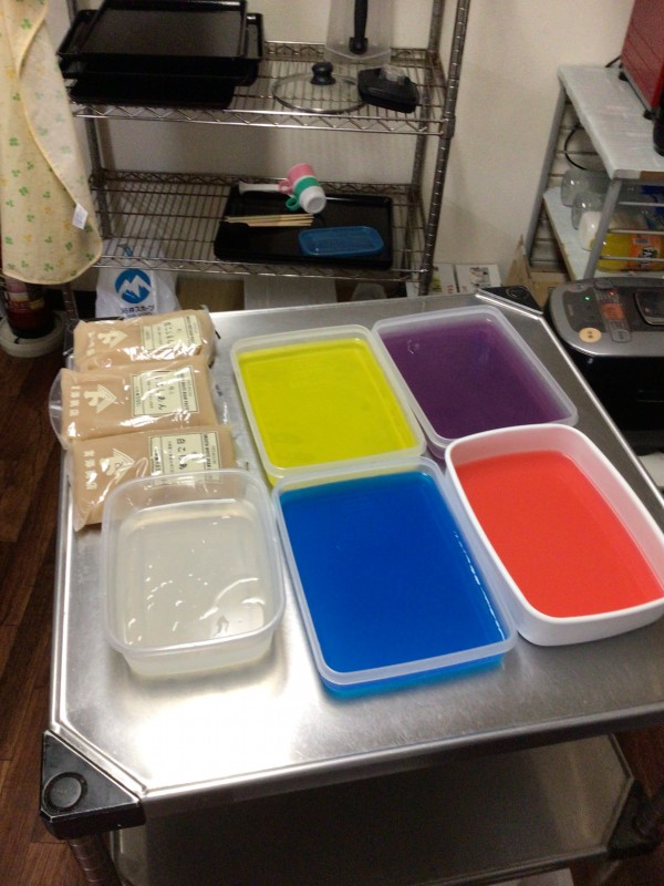 色とりどりのゼリーを切って・・・