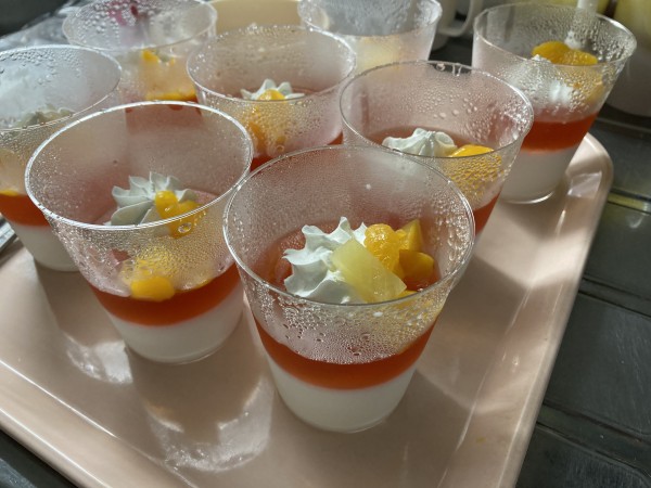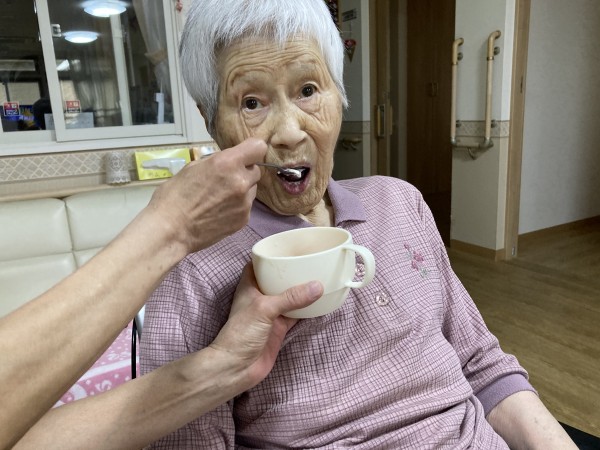 おやつには、二色ゼリーを作り、召し上がっていただきました。