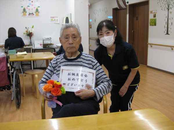 こんにちは! グループホームみんなの家・あきがせの介護ブログです! よろしくお願いいたします。 今日は1階の6月のお誕生日のお一人の方のお誕生日お祝いを行いました。
