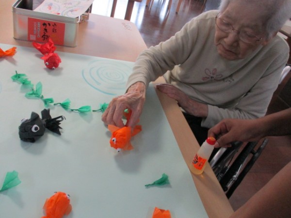 『ここは親子金魚をはりましょう』