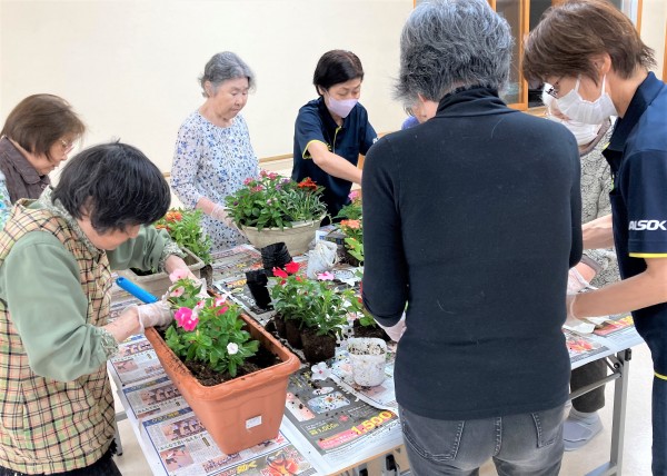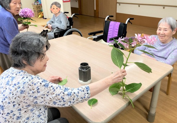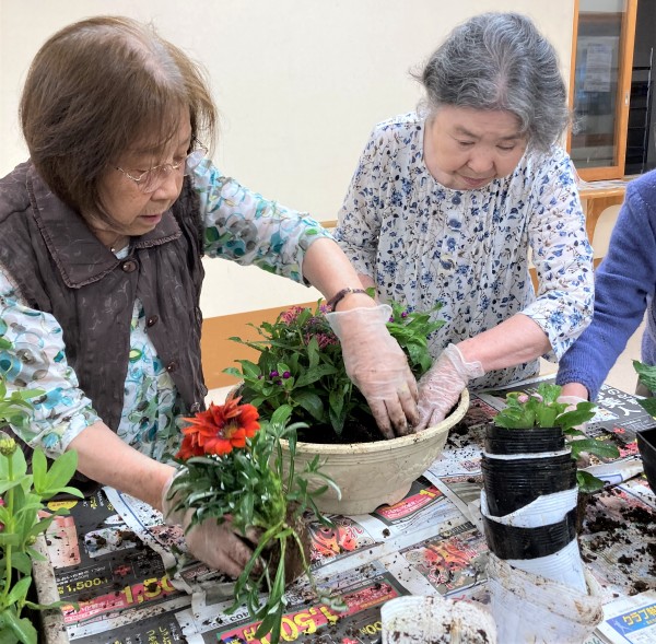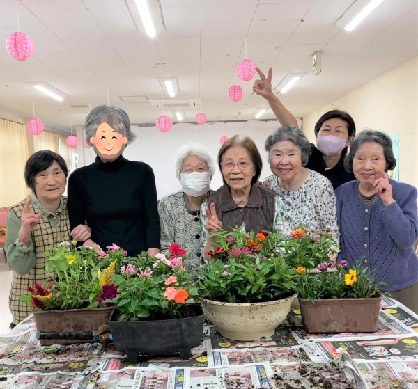 園芸クラブの日は朝から大雨でしたので、普段花壇を担当して下さっているご利用者様と一緒にプランターの植え替えをしました♪