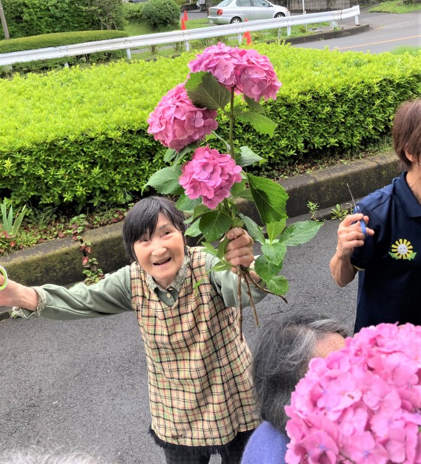 プランターへの植え替えが終わるころ、降っていた雨が止んだので、敷地内に咲いているアジサイを摘みに行って来ました~!