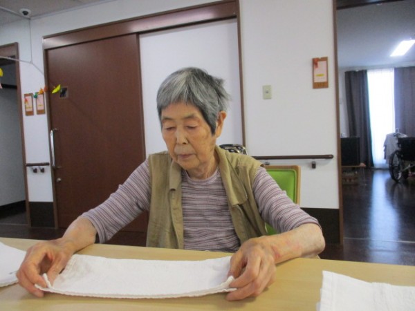 おしぼりたたみをお手伝いして下さいました。