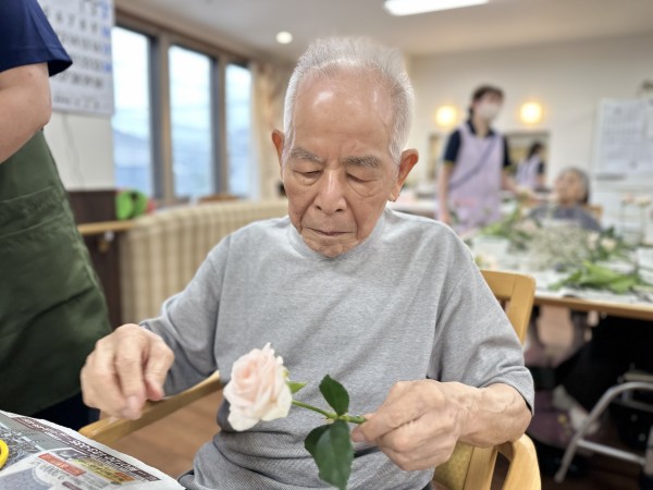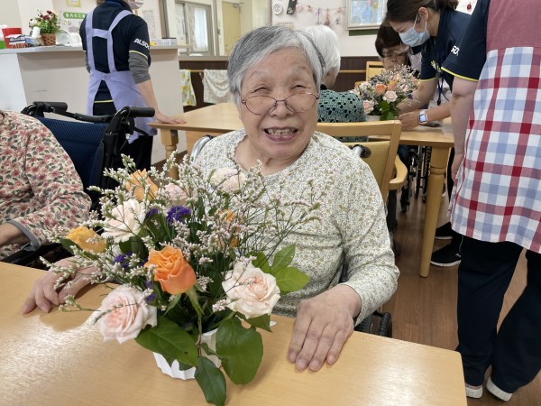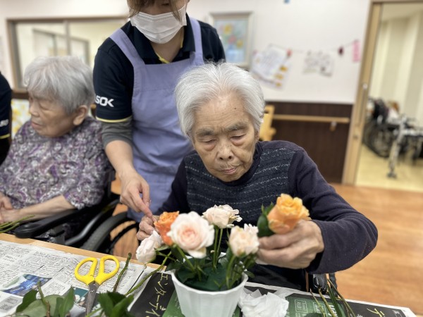 自立している方々がほとんどですが、集中して出来ますし、綺麗な色や香りで刺激もありますし、楽しめますので、とっても楽しいレクの時間でした☆